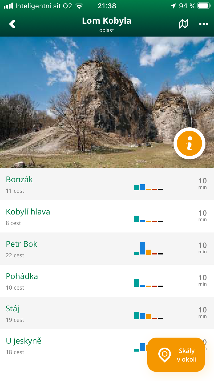 Vápencový lom nacházející se nedaleko Koněpruských jeskyní. Hlavní zásluhu na vzniku této nové oblasti má Honza Kareš a jeho tým. Lom nabízí kvalitní a neoklouzané lezení na více jak 90 cestách sportovního charakteru v obtížnostech od 4 do 10- UIAA.